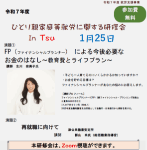令和8年1月25日(日)10:00~12:00 三重県社会福祉会館 4F 三重県母子・父子福祉センター会議室
